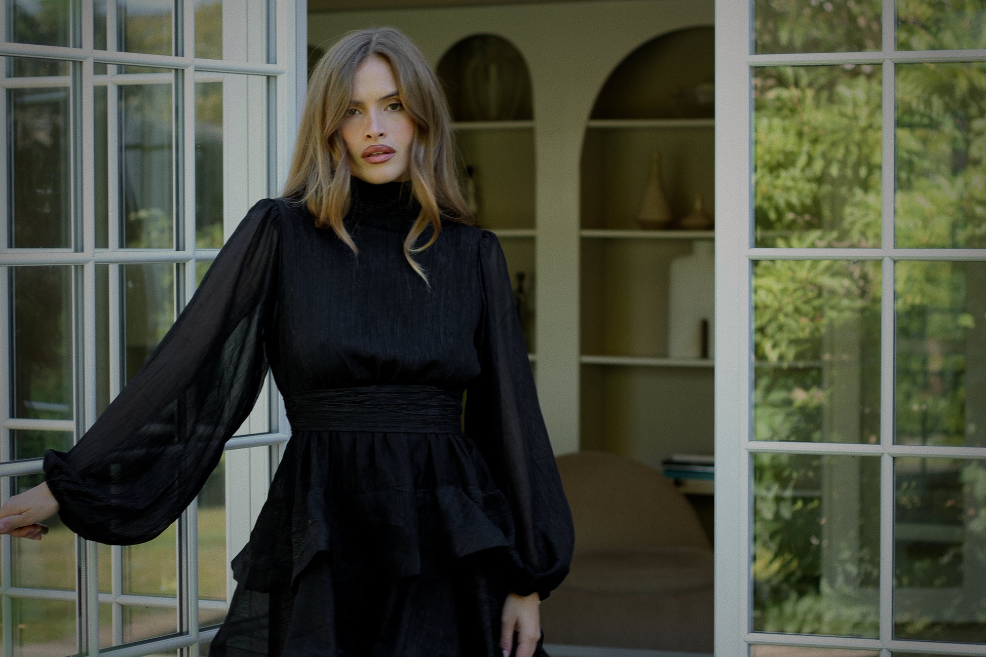 Skill deg ut denne festsesongen med Kelly Minari-kjolen – en unik og vakker kjole som kombinerer eleganse og stil. Med en sofistikert høy hals og et lekent volangskjørt er denne kjolen perfekt til julebord, nyttårsfeiring og andre spesielle anledninger. Glidelåsen bak gjør den enkel å ta på, og med normal passform gir den både komfort og et sofistikert uttrykk. Som en av våre bestselgere er denne kjolen et enkelt valg for deg som vil gjøre et stilig inntrykk.