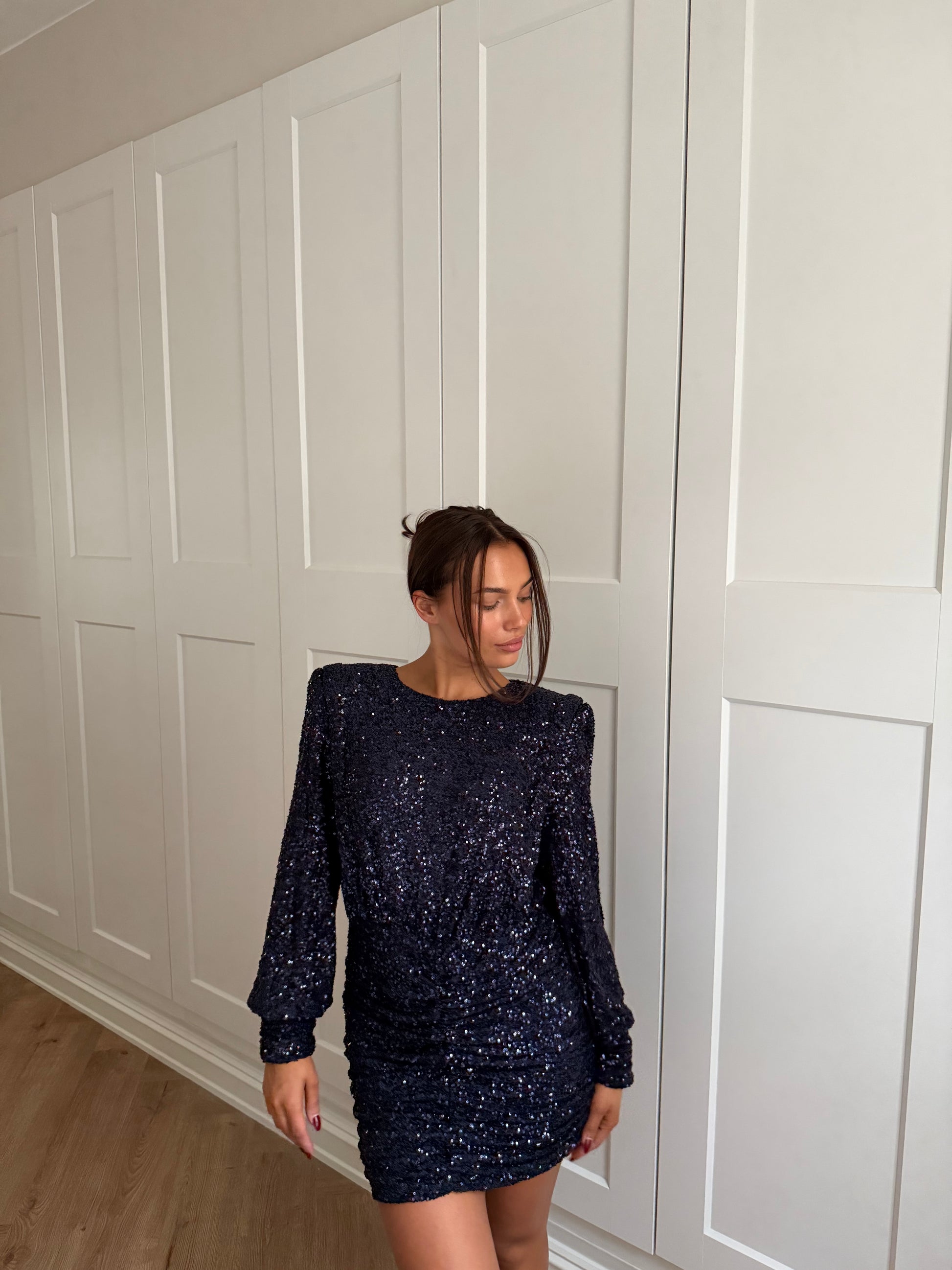 Serina Sequin Mini Gown Dress - Marine Sparkle